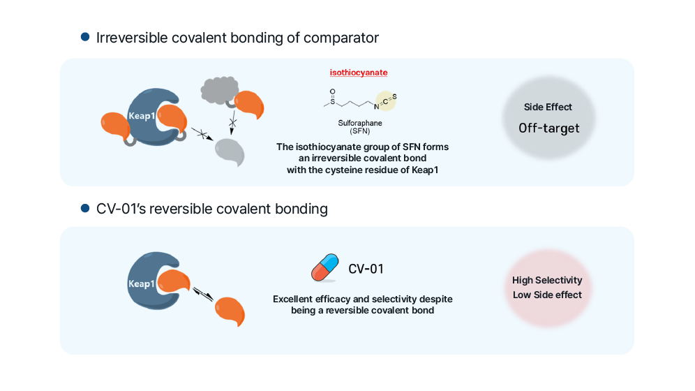 We are developing a first-in-class candidate that targets the Keap1/Nrf2 pathway